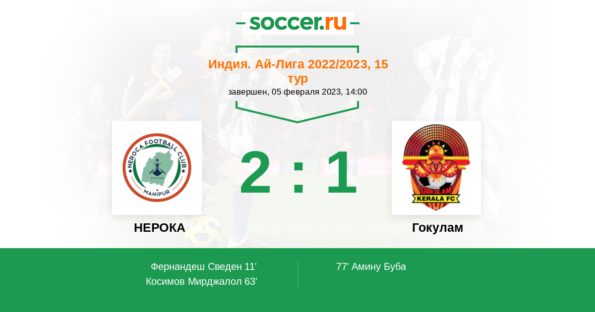 | Гокулам | 22:12 | 12:6 | 10:6 |