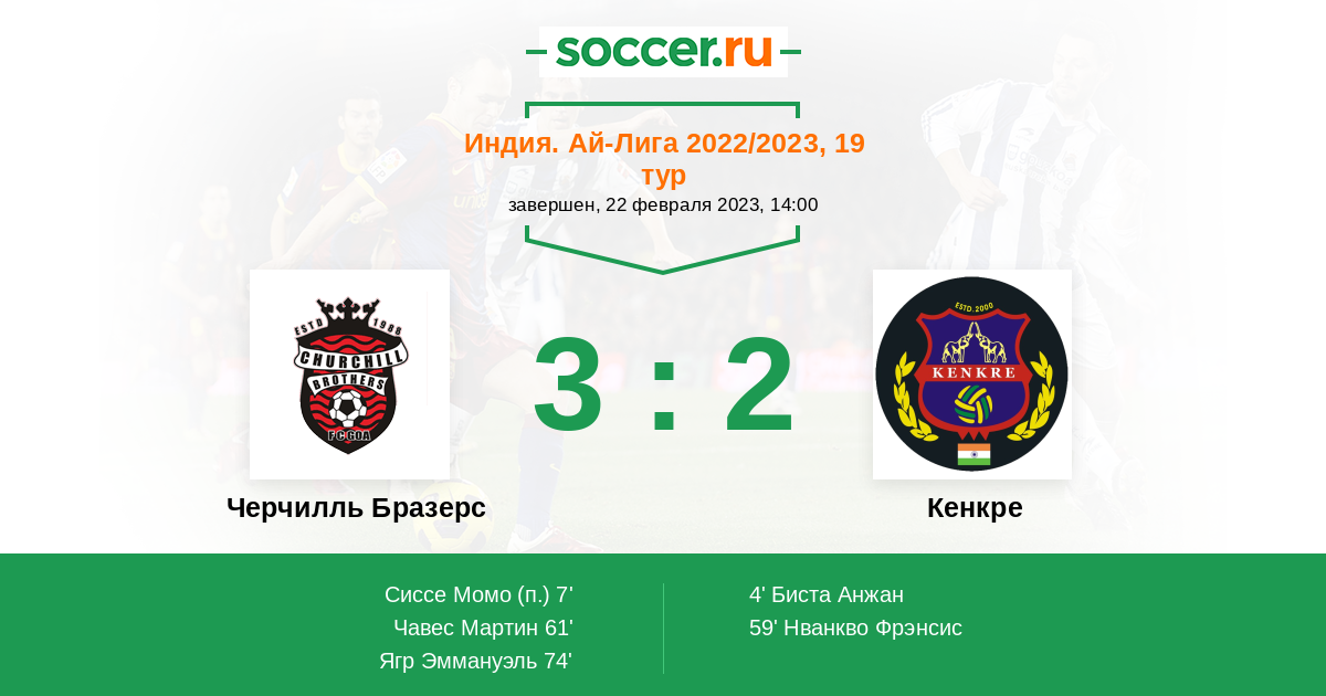 | Черчилль Бразерс | 3:2 | 0:0 | 3:2 |