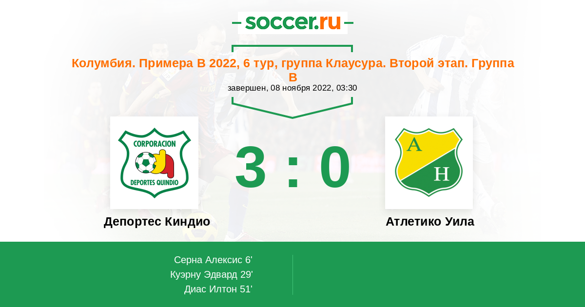 | Депортес Киндио | 28:42 | 16:16 | 12:26 |