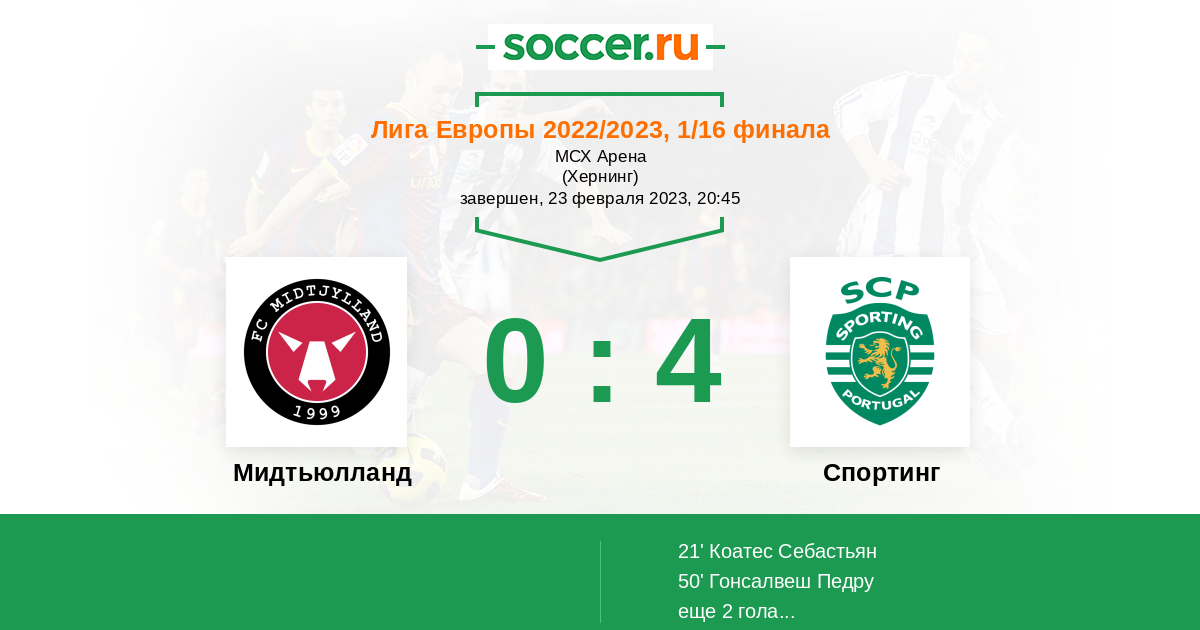 | Мидтьюлланд | 3:7 | 2:3 | 1:4 |