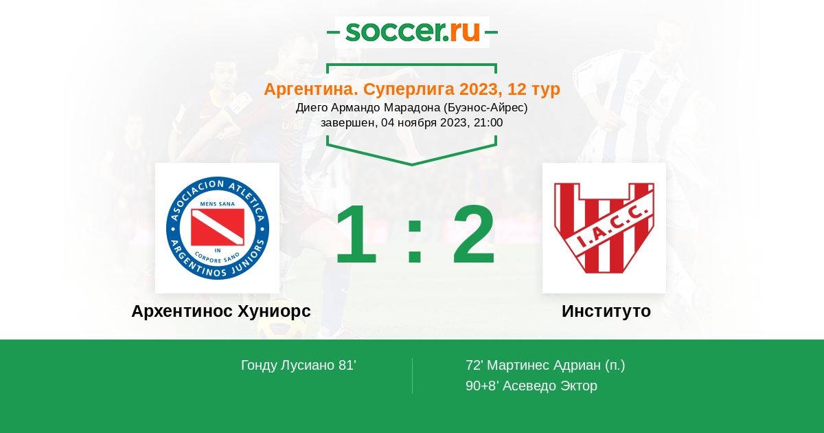 | Архентинос Хуниорс | Институто | |