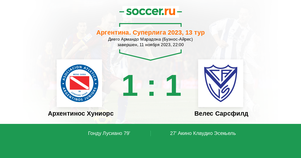 | Архентинос Хуниорс | Велес Сарсфилд | |