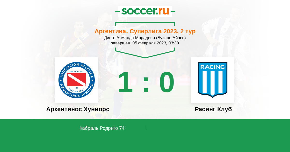 | Архентинос Хуниорс | 44:46 | 26:13 | 18:33 |