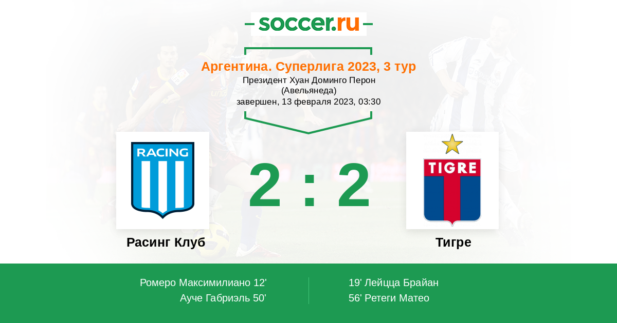 | Расинг Клуб | 35:32 | 20:12 | 15:20 |