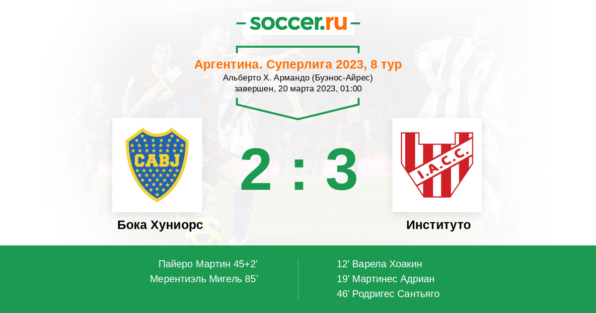 | Бока Хуниорс | Институто | |