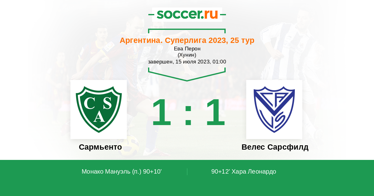 | Велес Сарсфилд | 14:6 | 9:4 | 5:2 |