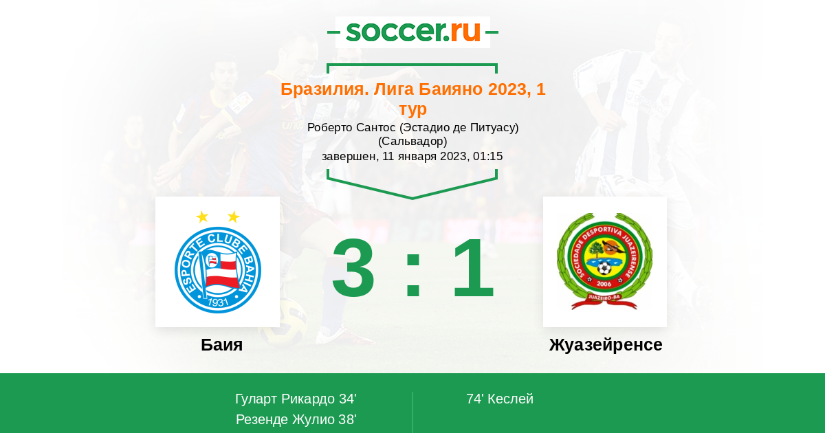 | Бразилия. Лига Баияно | 17 | 11 | 2 | 4 |
