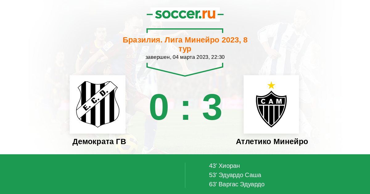 | Демократа ГВ | Атлетико Минейро | |