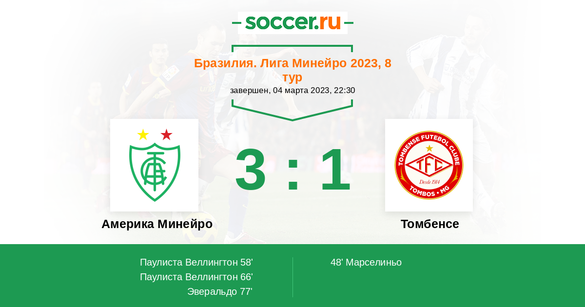 | Америка Минейро | 12:14 | 6:4 | 6:10 |