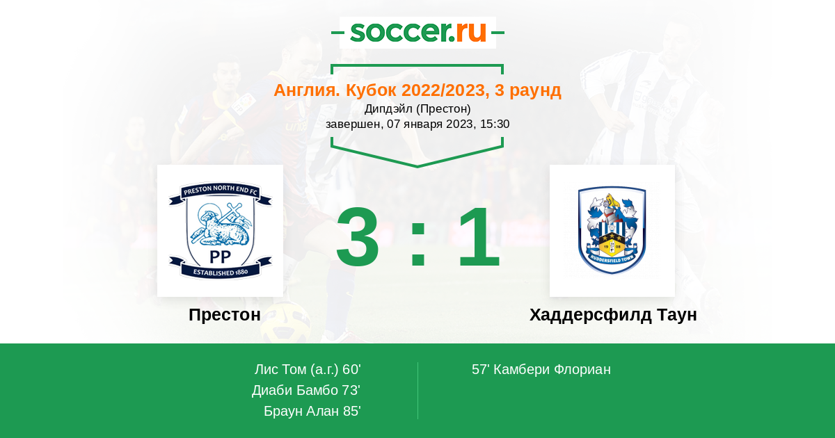 | Престон | Хаддерсфилд Таун | |