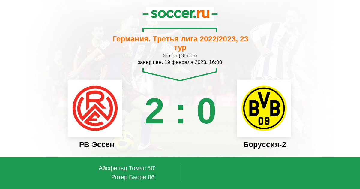| РВ Эссен | 23:28 | 14:12 | 9:16 |