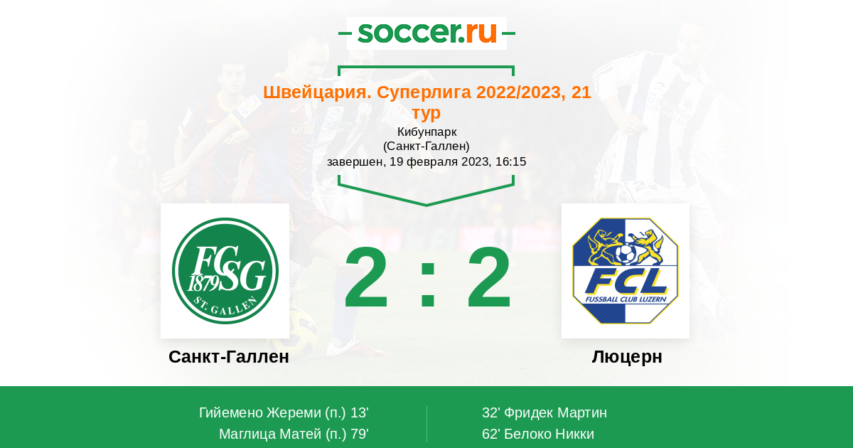 | Санкт-Галлен | 99:117 | 57:51 | 42:66 |