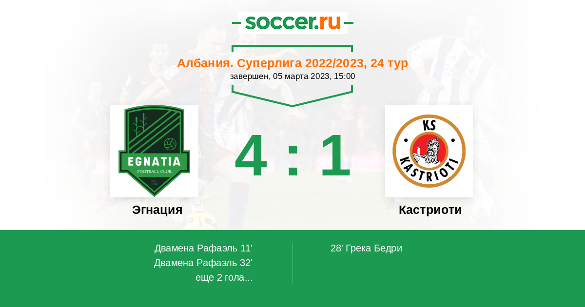 | Кастриоти | 18:16 | 13:10 | 5:6 |