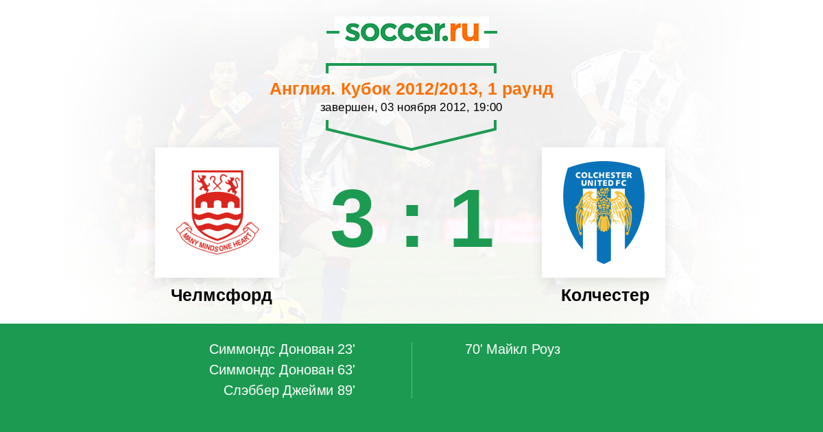 | Челмсфорд | 1:4 | 1:4 | 0:0 |