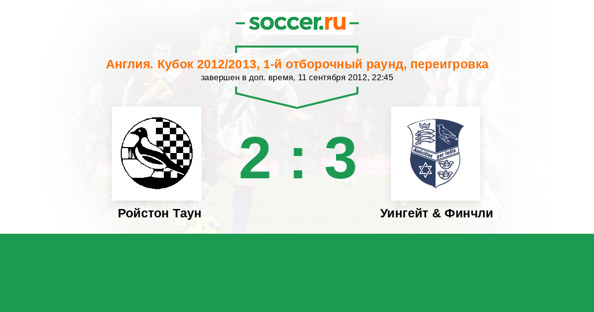 | Ройстон Таун | Уингейт & Финчли | |