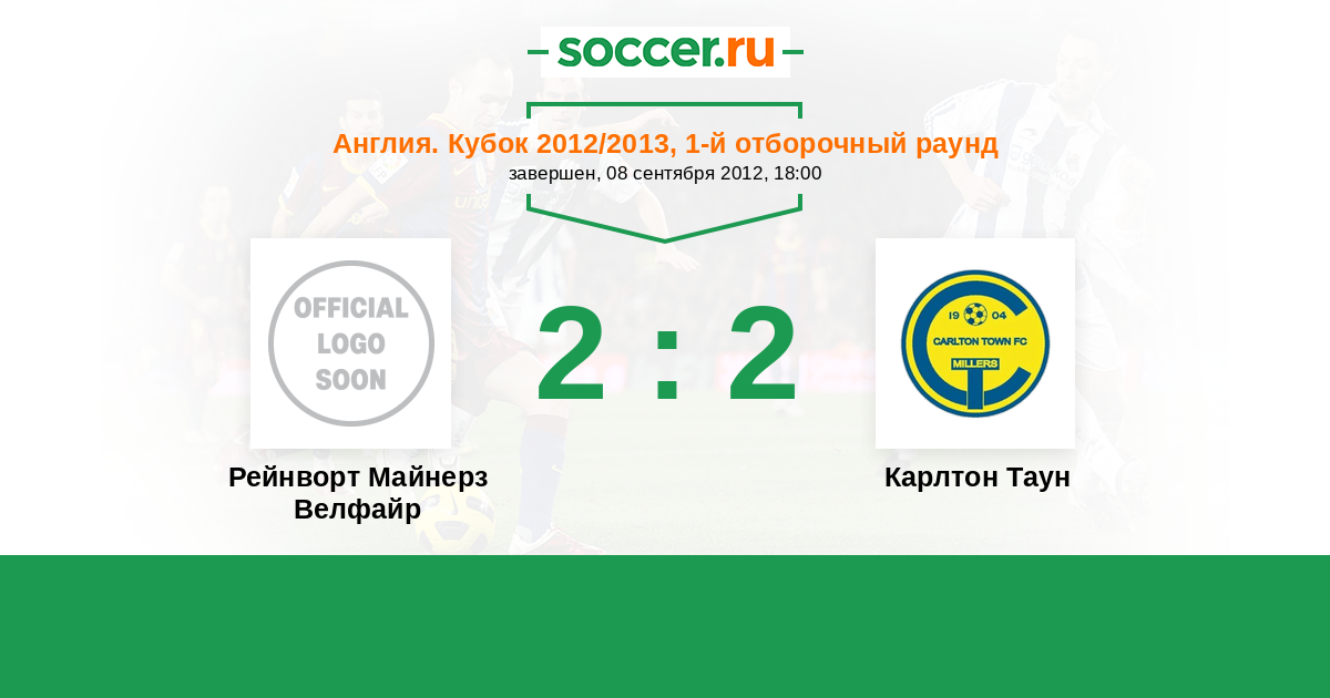 | Рейнворт Майнерз Велфайр | Карлтон Таун | |