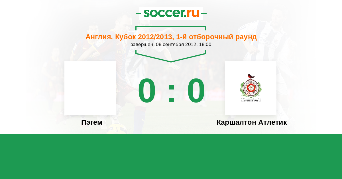 | Пэгем | 3:8 | 0:0 | 3:8 |