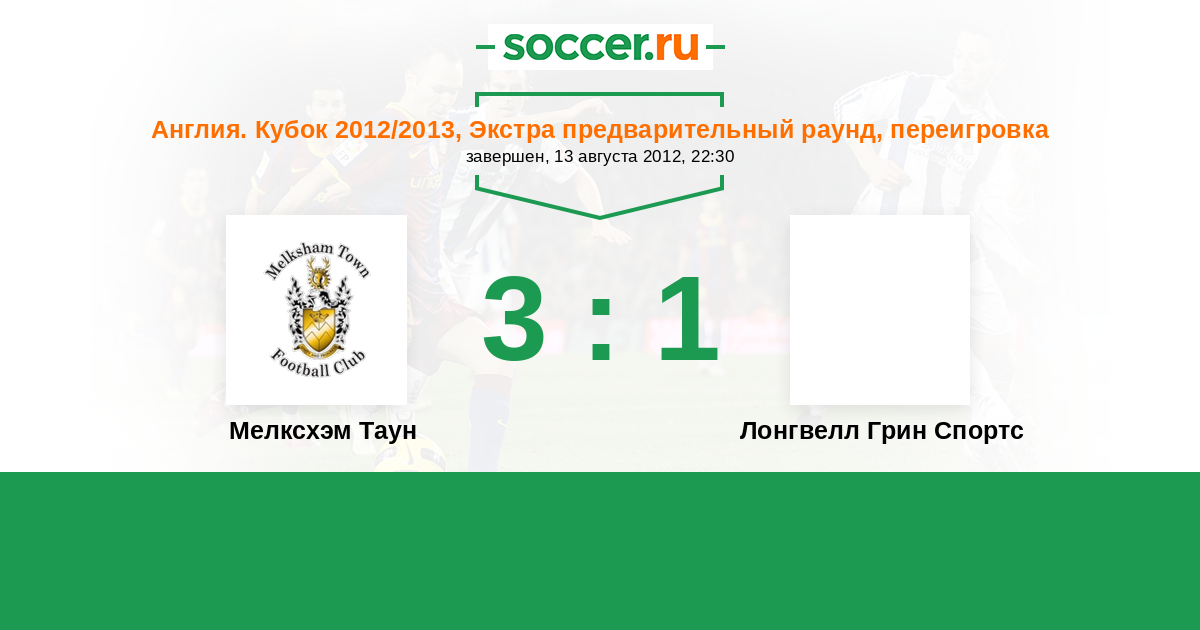 | Мелксхэм Таун | Лонгвелл Грин Спортс | |