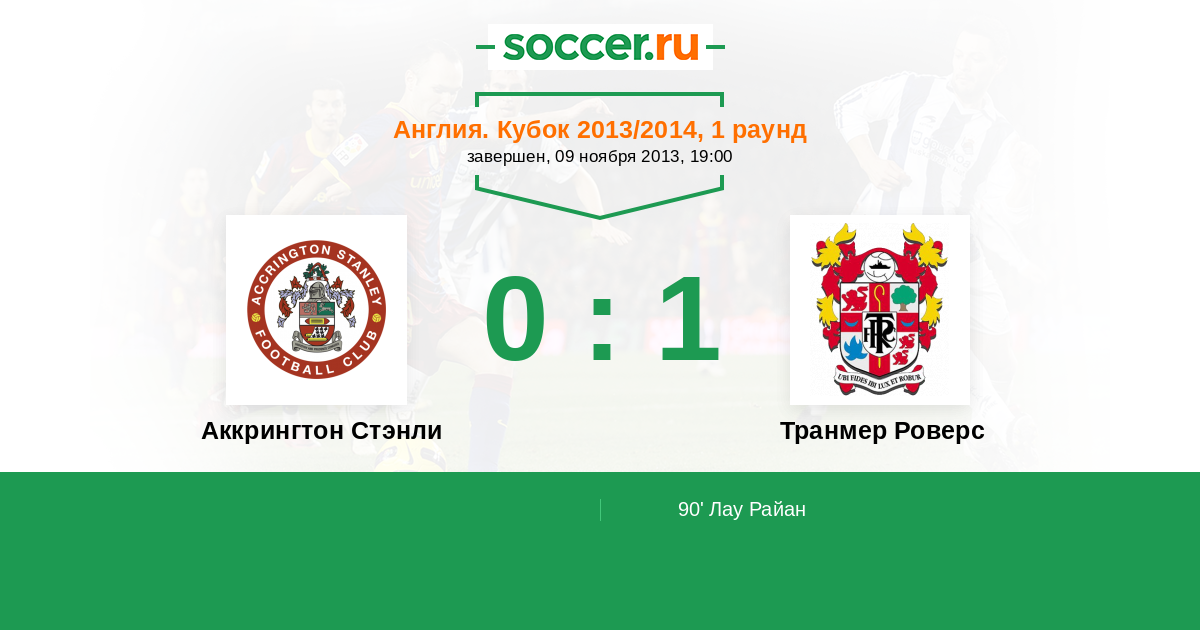 | Аккрингтон Стэнли | 18:29 | 14:13 | 4:16 |