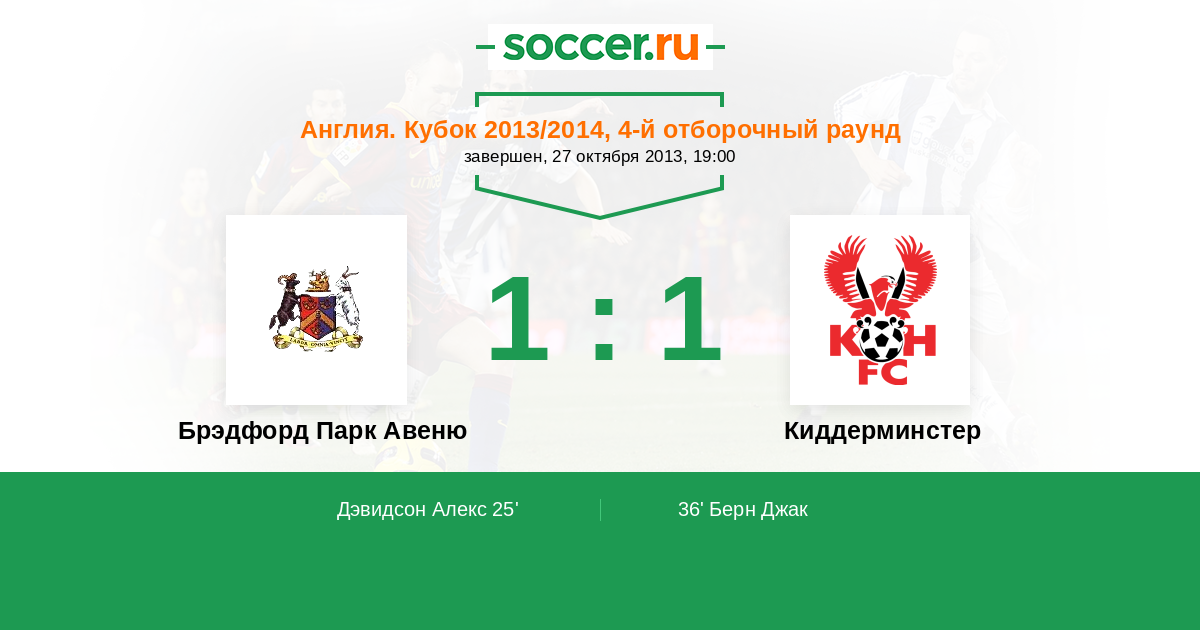 | Брэдфорд Парк Авеню | 1:2 | 0:0 | 1:2 |