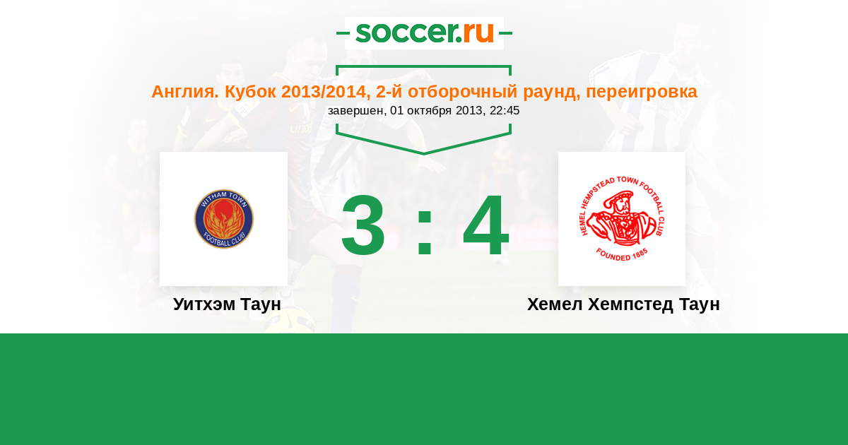 | Хемел Хемпстед Таун | 1:1 | 1:1 | 0:0 |