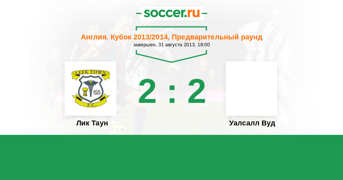 | Уалсалл Вуд | 2:0 | 2:0 | 0:0 |