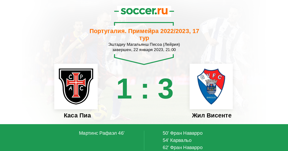 | Жил Висенте | 5:3 | 4:1 | 1:2 |