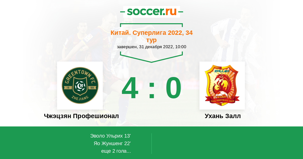 | Чжэцзян Профешионал | 3:0 | 0:0 | 3:0 |