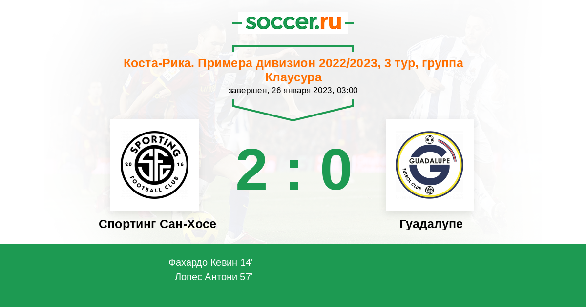 | Спортинг Сан-Хосе | Гуадалупе | |
