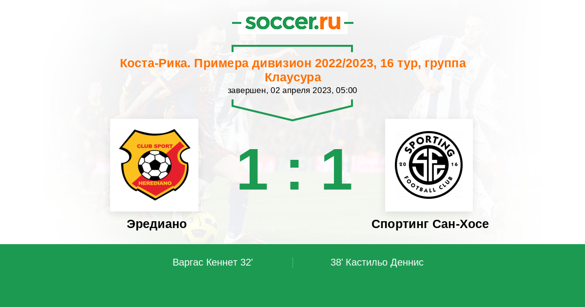 | Эредиано | Спортинг Сан-Хосе | |