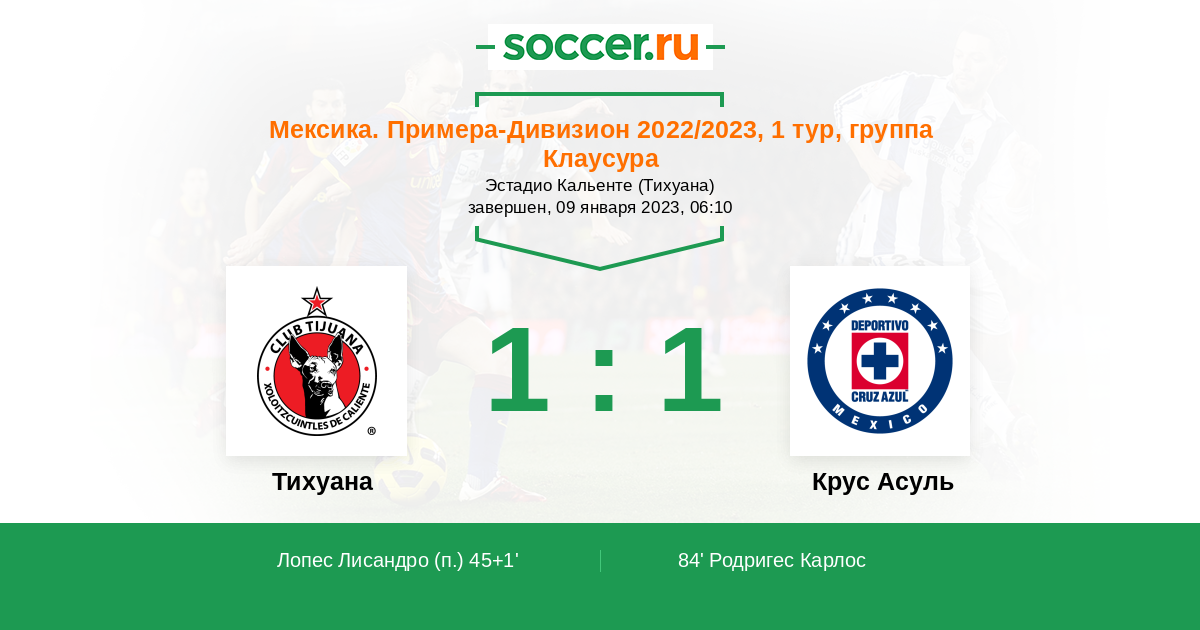 | Тихуана | Крус Асуль | |