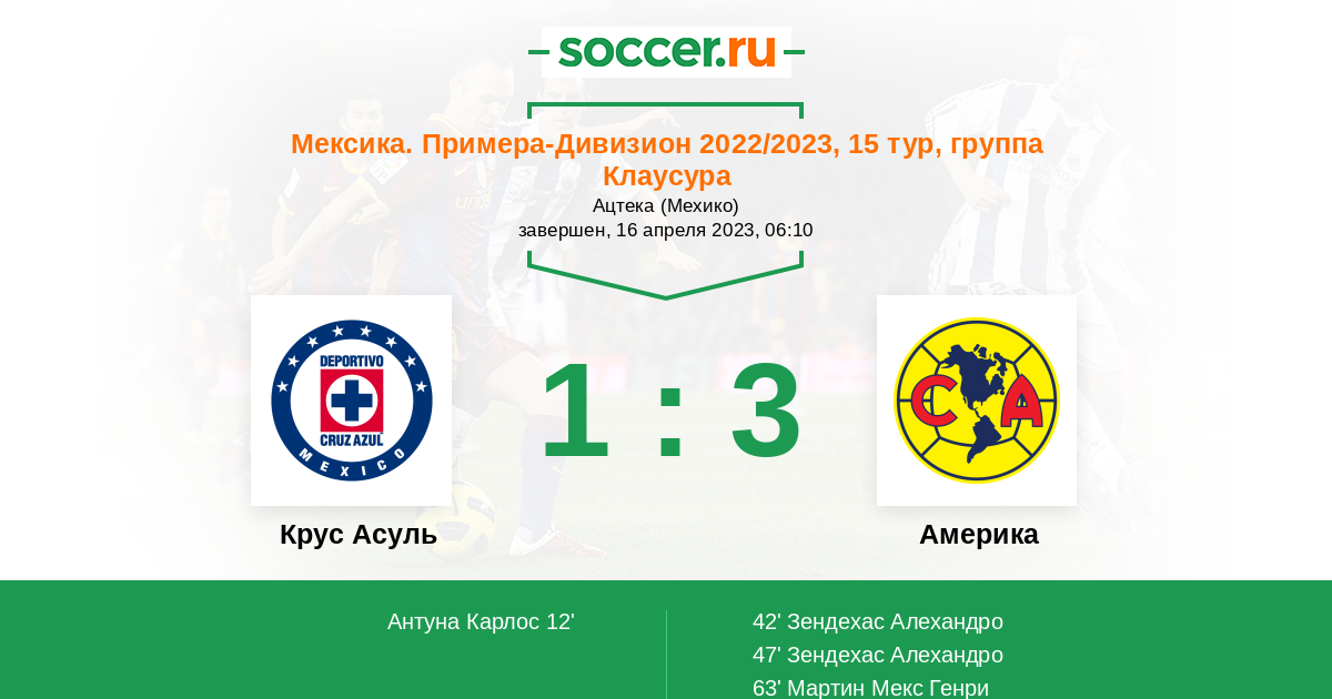 | Крус Асуль | Америка | |