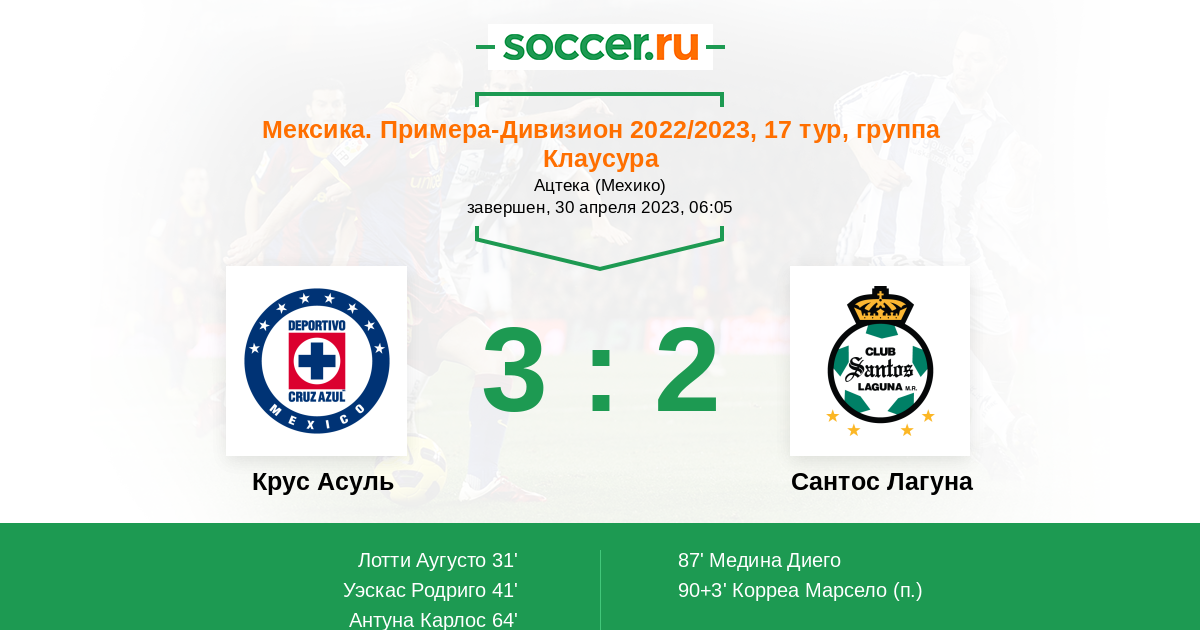 | Сантос Лагуна | 70:63 | 46:25 | 24:38 |