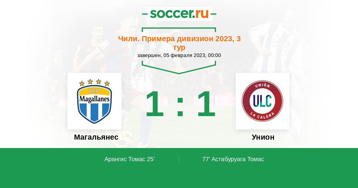 | Магальянес | 1:2 | 0:0 | 1:2 |
