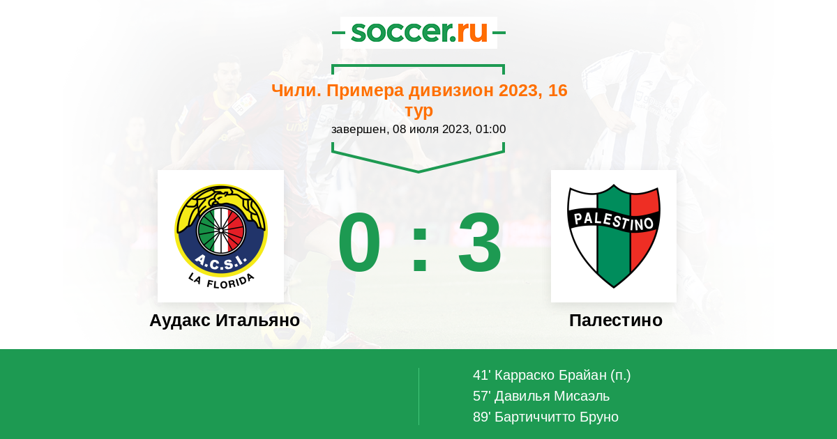 | Аудакс Итальяно | Палестино | |