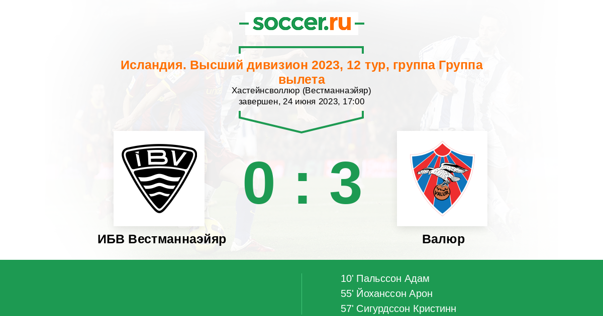 | ИБВ Вестманнаэйяр | Валюр | |