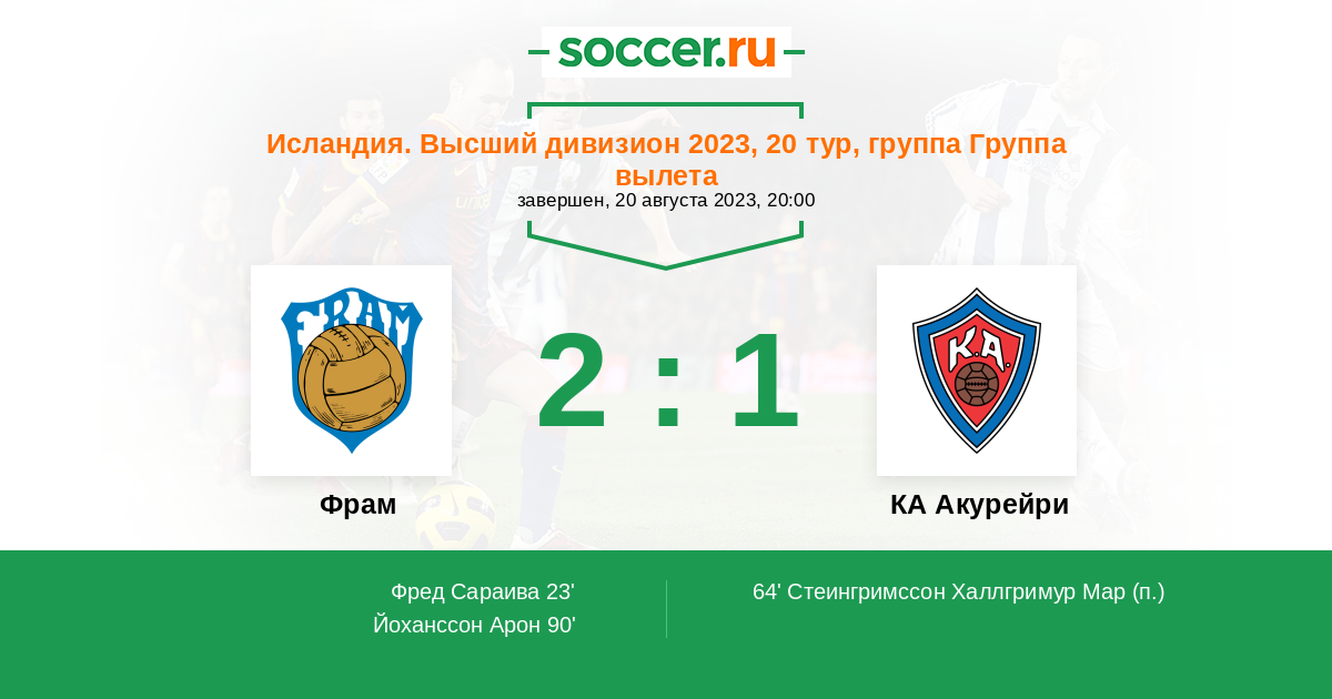 | КА Акурейри | 37:27 | 17:14 | 20:13 |