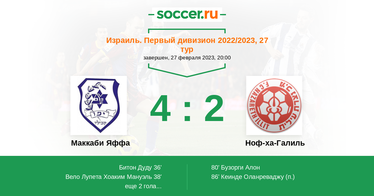 | Маккаби Яффа | Ноф-ха-Галиль | |