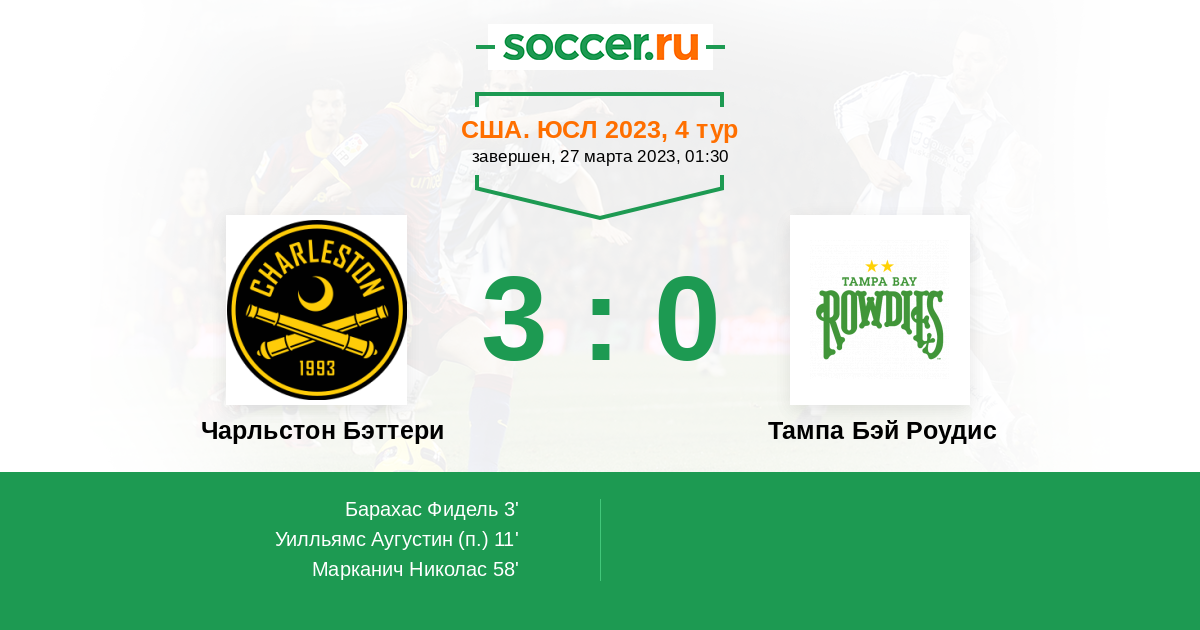 | Чарльстон Бэттери | Тампа Бэй Роудис | |