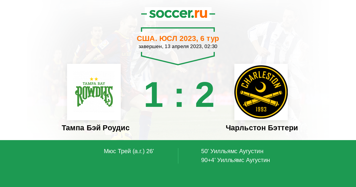 | Чарльстон Бэттери | 33:32 | 19:12 | 14:20 |