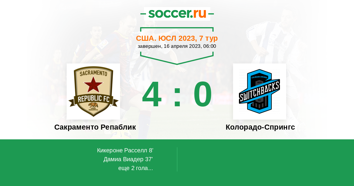 | Сакраменто Репаблик | Колорадо-Спрингс | |