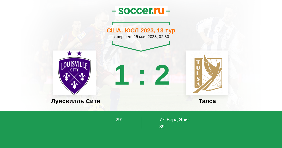 | Луисвилль Сити | Талса | |