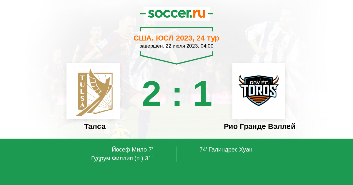 | Талса | 2:1 | 0:0 | 2:1 |