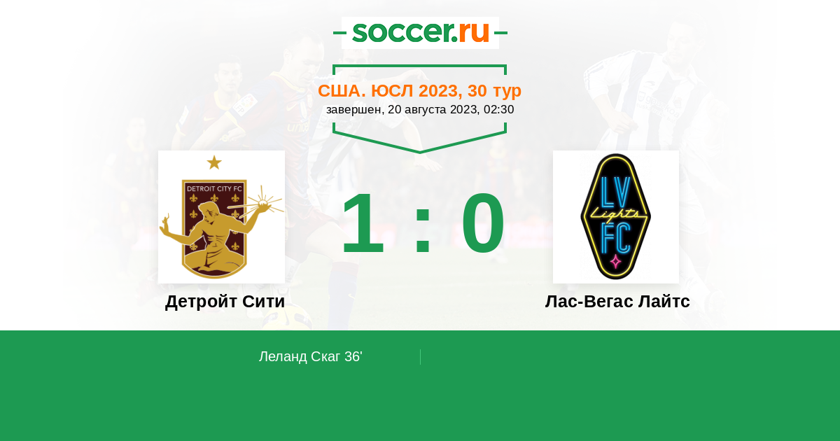 | Детройт Сити | 2:1 | 0:0 | 2:1 |