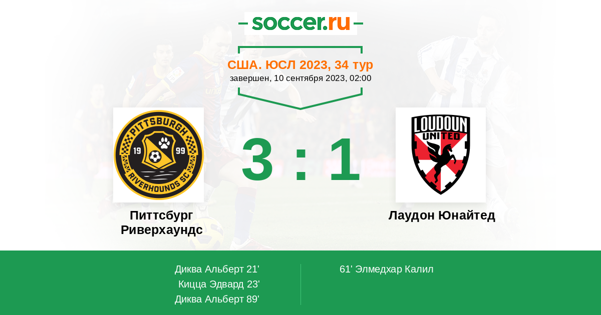 | Питтсбург Риверхаундс | Лаудон Юнайтед | |