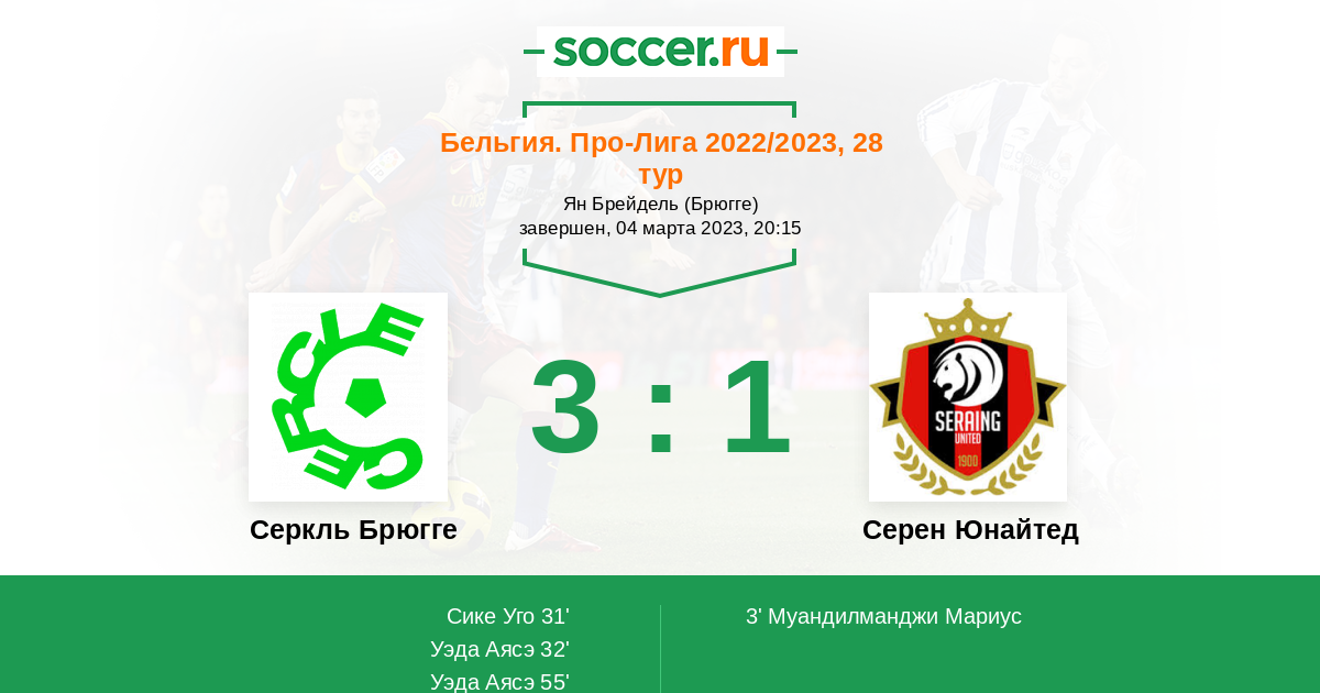 | Серкль Брюгге | Серен Юнайтед | |