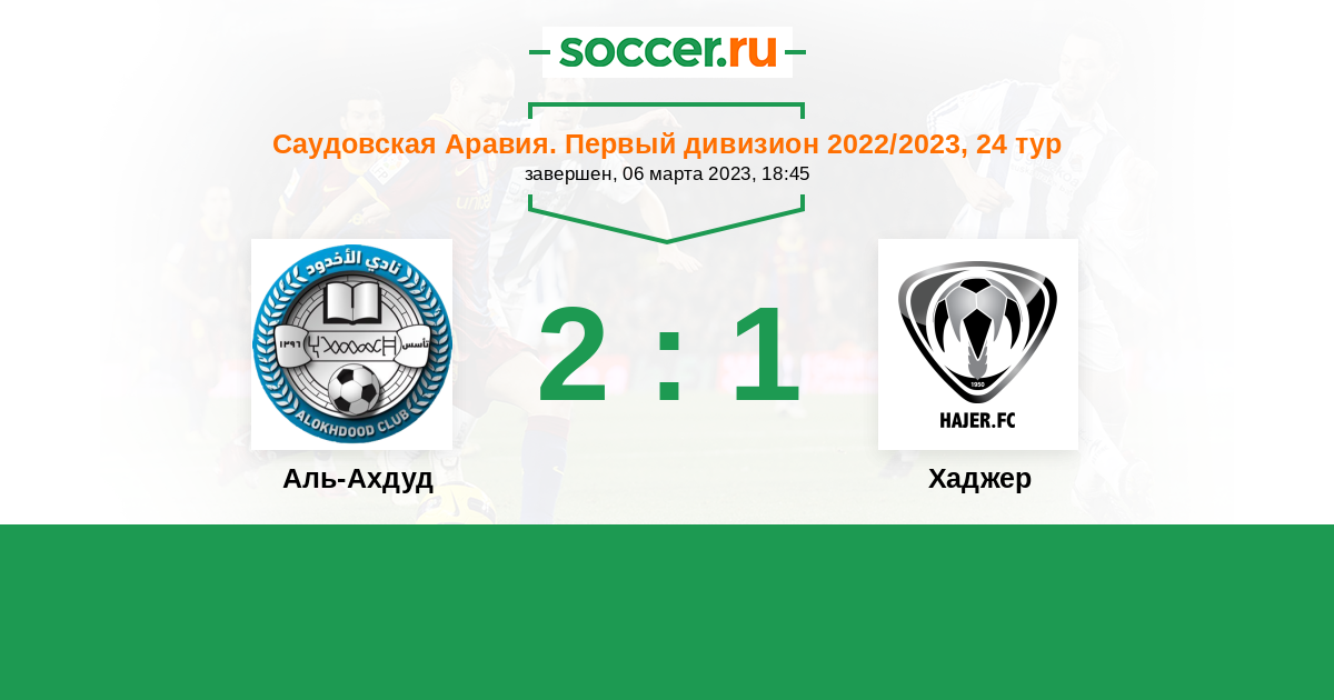 | Аль-Ахдуд | 2:3 | 2:1 | 0:2 |