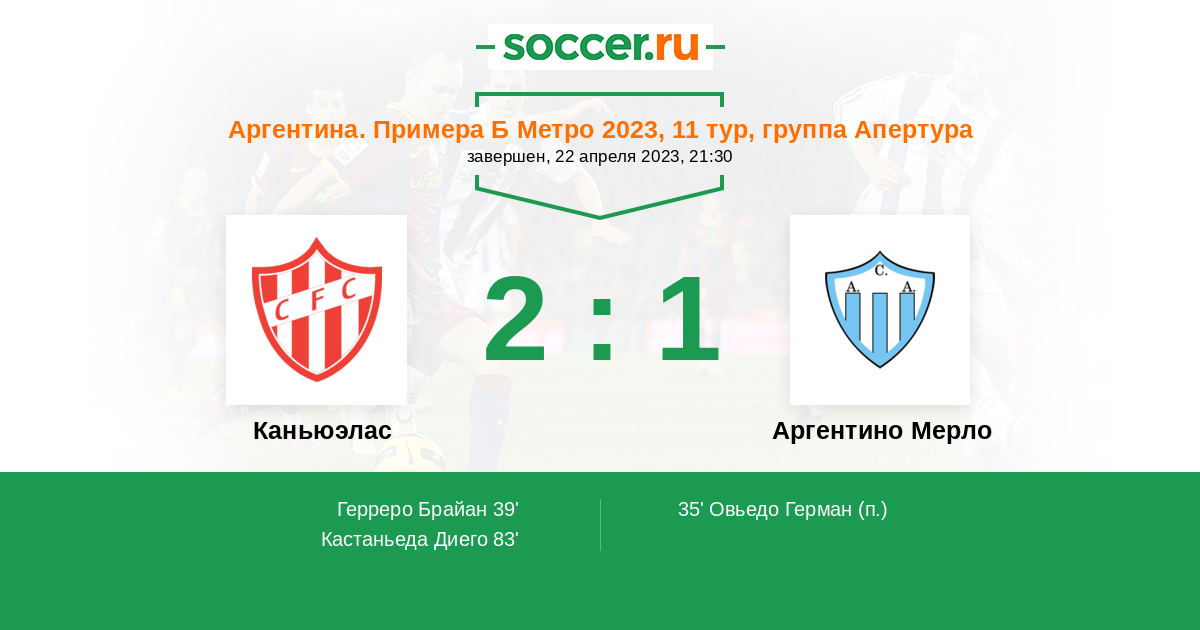 | Аргентина. Примера С Метро | 13 | 7 | 4 | 2 |
