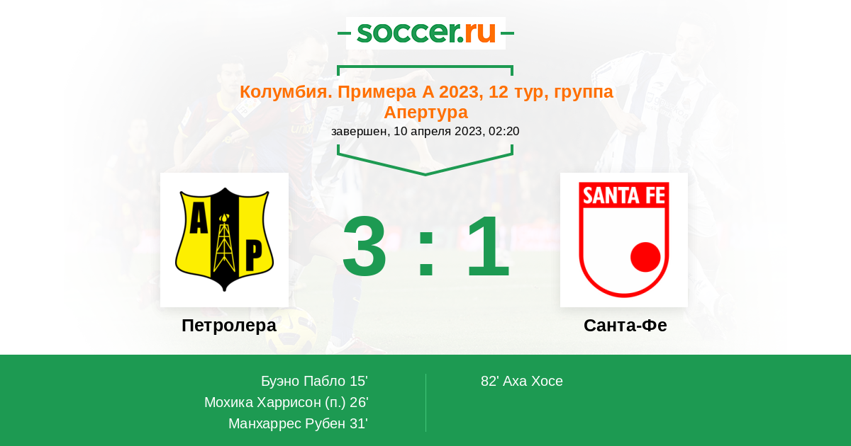 | Санта-Фе | 31:24 | 17:10 | 14:14 |