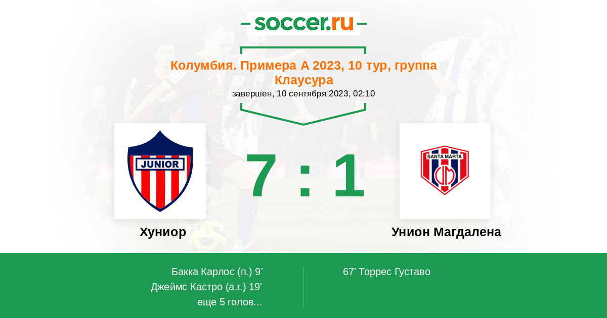 | Хуниор | Унион Магдалена | |